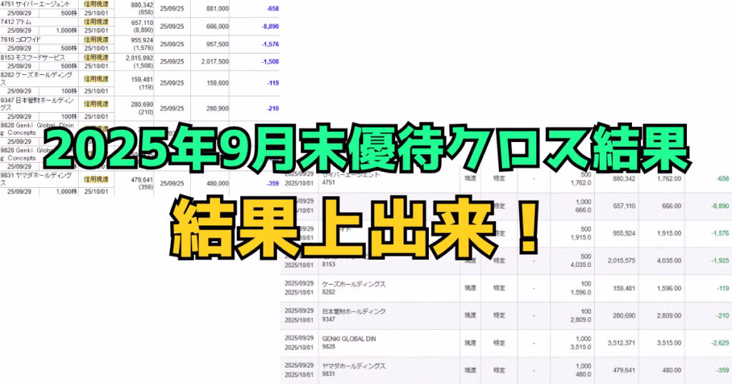 【実録レポ】2025年9月末権利確定の優待クロスを仕込みました~その②